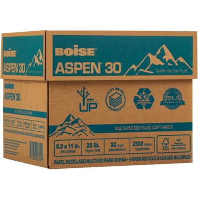 Aspen 30 Multi-Use Copy Paper – 92 Brightness – Letter – 215.90 mm x 279.40 mm – 9071.85 g Basis Weight – Smooth – Sustainable Forestry Initiative (SFI) – Jam-free, Acid-free – White – 2500 / Carton